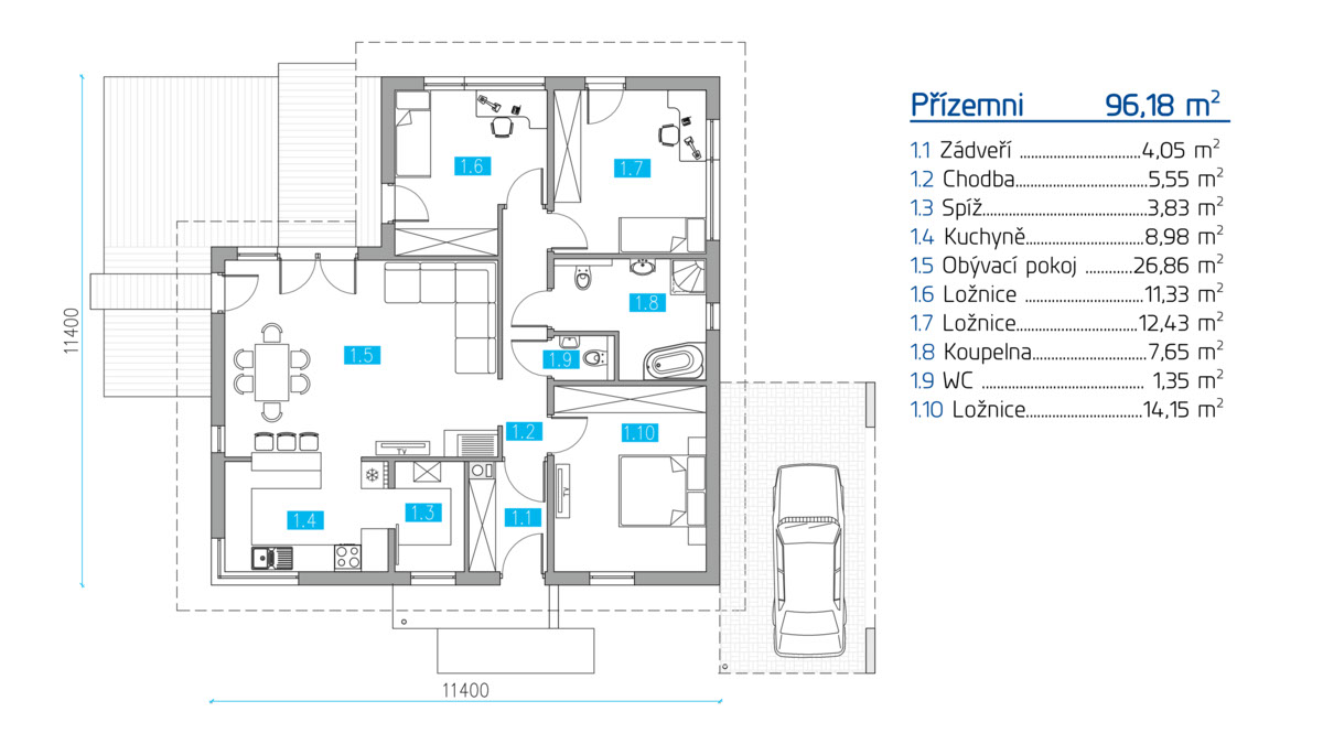 Celková plocha: 113,25 m2