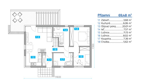 V nabídce máme také variantu s koupelnou v podkroví nebo s nadezdívkou podkroví.
