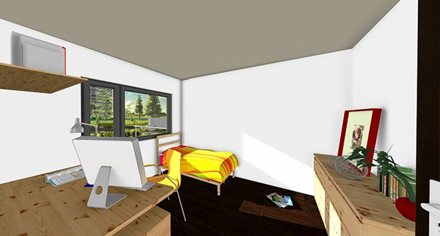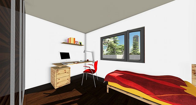 S těmito vymoženostmi členové domácnosti mají stálý kontakt s okolní přírodou. Ideálním doplňkem vnitřního prostoru je terasa otevřena do okolní zahrady, přístupná ze salonku i z ložnice rodičů.