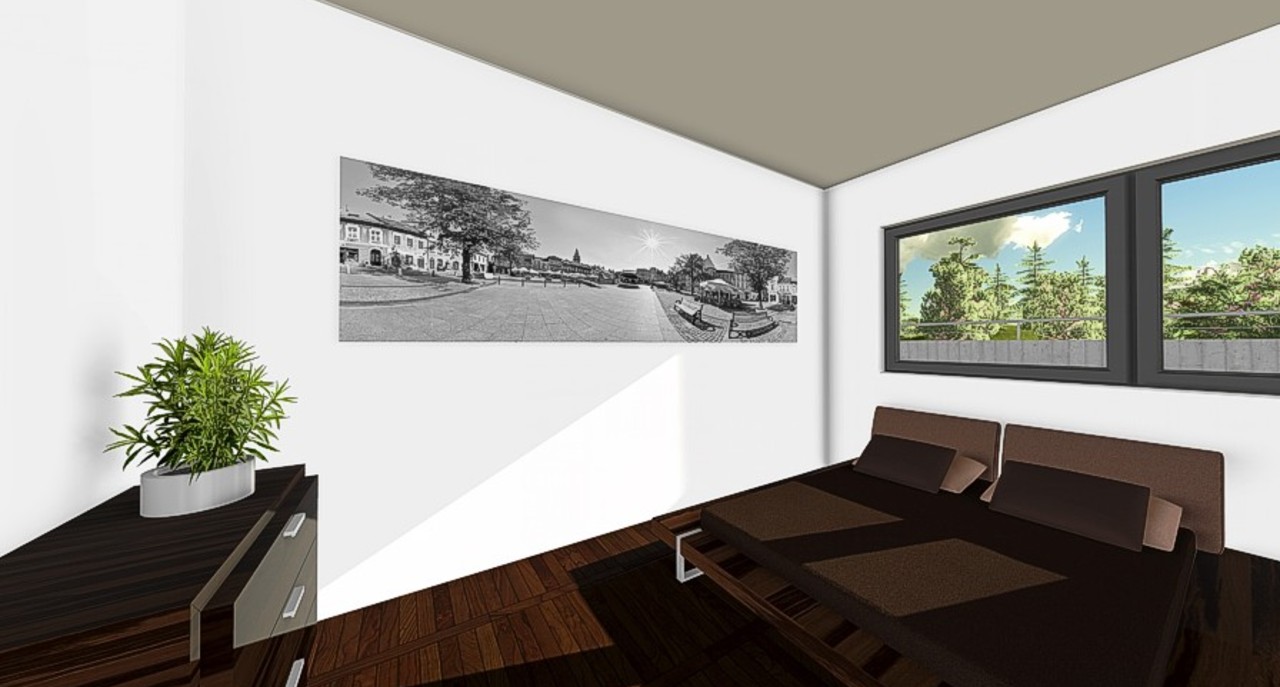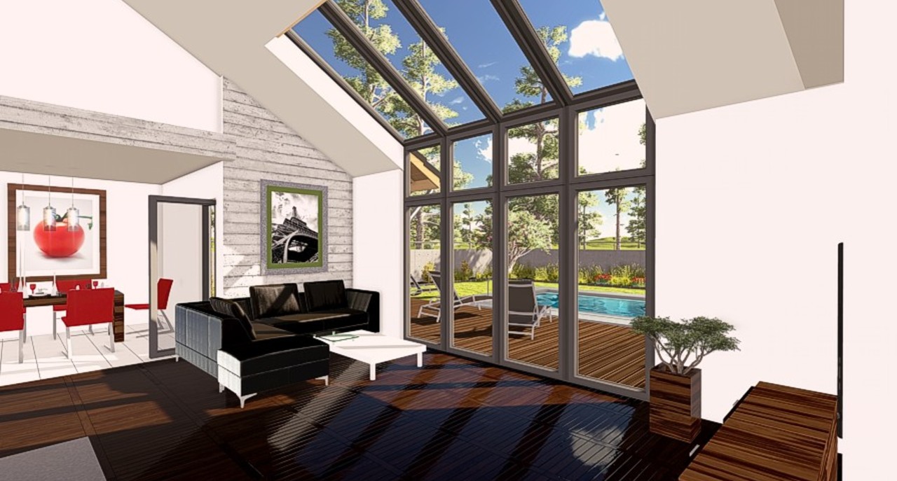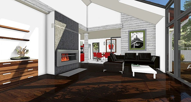 Po překročení předsíně vstupujeme do obývacího pokoje, který je srdcem každého domova. Zde je pohodlná pohovka, domácí kino a krb, kde si členové domácnosti mohou odpočinout a vychutnat čas strávený s rodinou. Interiér obývacího pokoje plynule splývá se zahradou přes velká terasová okna a světlík ve střeše.